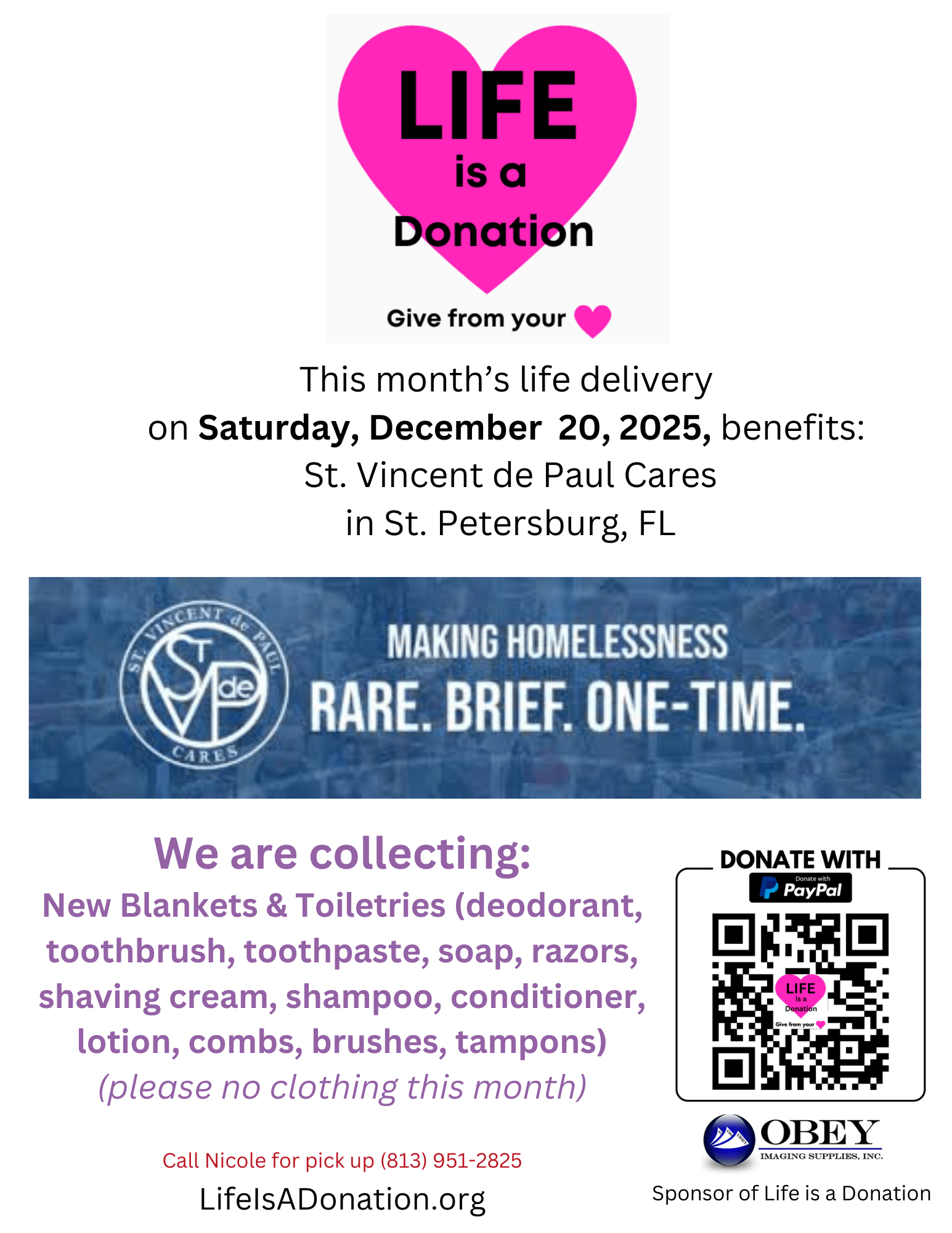 Delivering food, Christmas gifts and other lifesaving supplies to St. Vincent de Paul Cares